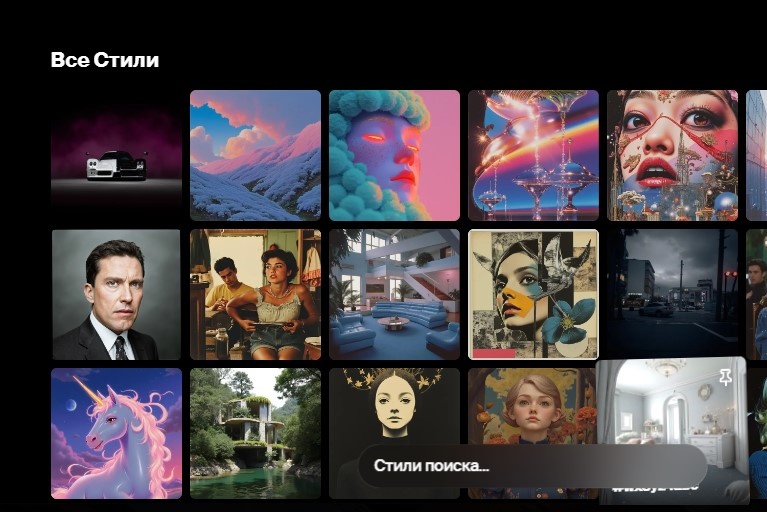 Можно выбрать понравившийся стиль из выданных либо найти другой стиль, введя в строку поиска ключевое слово.