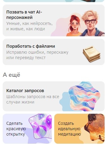 Умеет генерировать как текст, так и изображения. С изображениями справляется так себе, а вот с созданием текста отлично. Можно выбрать режим генерации через разные нейросети - GigaChat, YandexGPT, ChatGPT. Отдельной кнопкой вынесена функция - пост для социальных сетей.