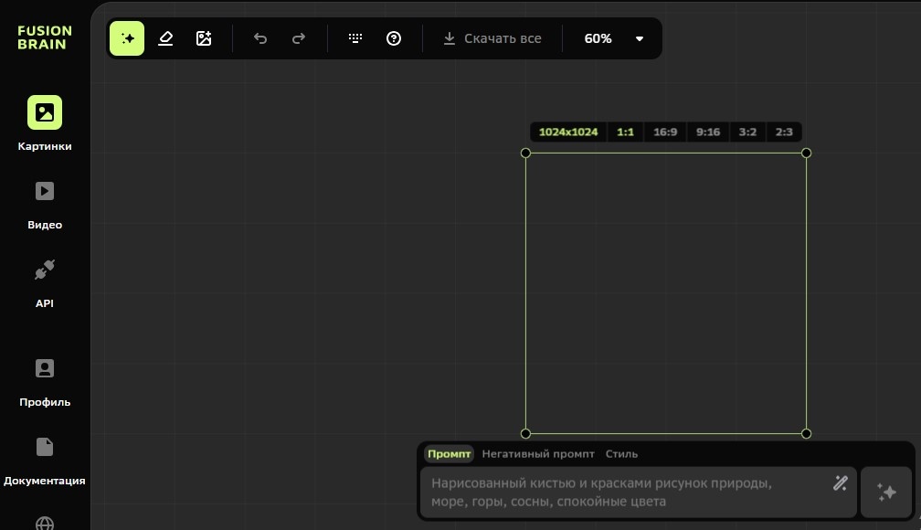 Далее вы можете выбрать стиль, модель, соотношение сторон или просто нажать «Начать генерацию»