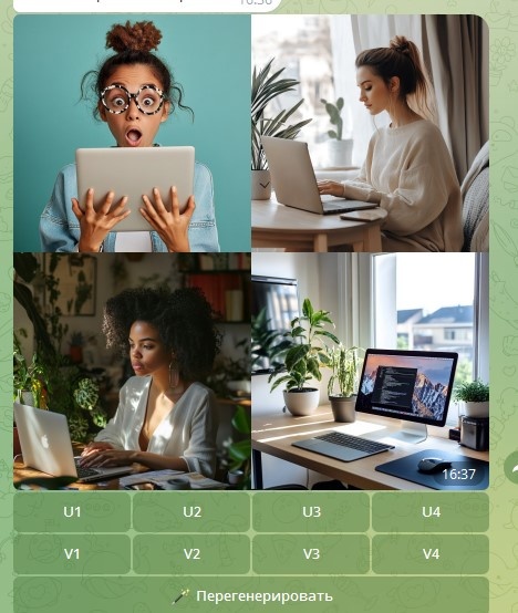 Это бот в телеграм, который интегрирован с chatGPT + Midjourney. Эта нейросеть-бот умеет писать тексты и генерировать рисунки по описанию. Вы пишете текстовое описание — бот генерирует 4 варианта картинки. Из которых вы можете выбрать любую понравившуюся, либо перегенерировать заново.
