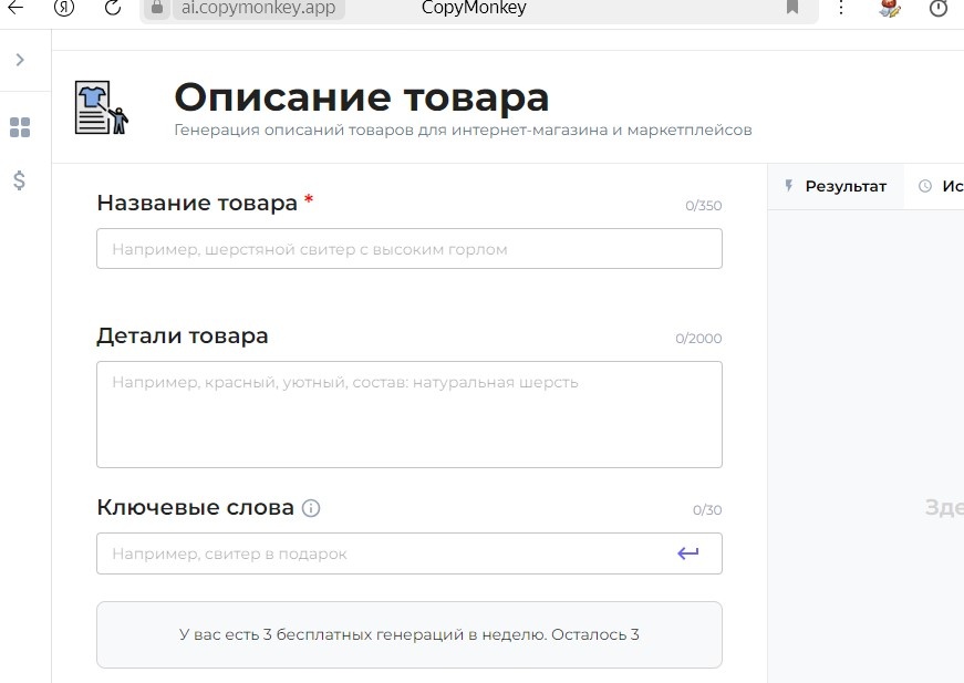 Copy Monkey - это умный помощник для создания привлекательных описаний товаров. Copy Monkey поможет разместить важные ключевые слова в тексте. Это позволит вашему товару "подняться" выше в поисковой выдаче.