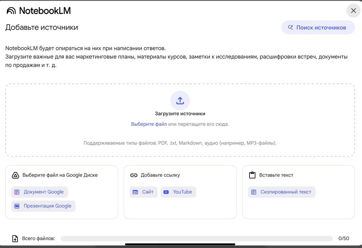 Notebook LM работает как умный консультант, который помнит, что вы ему загрузили — и отвечает только по этим данным.