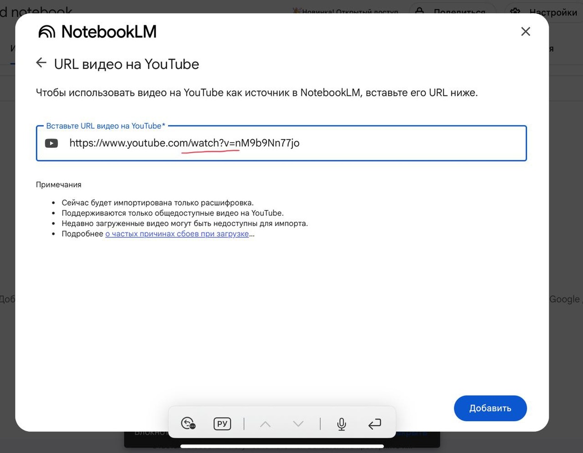 - Загружаете в Notebook LM,