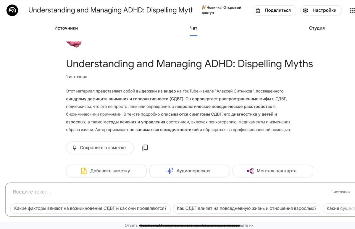 Notebook LM — нейросеть, которая делает конспект за тебя — из любого видео, документа или файла
