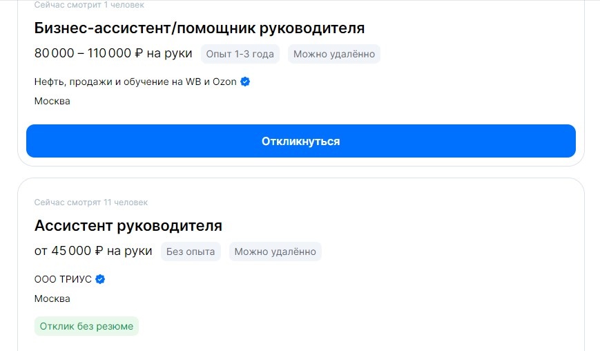 Вот несколько вакансий онлайн ассистента с сайта hh.ru. Данные по состоянию на октябрь 2024 года.