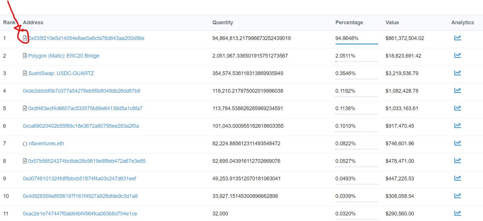 Теперь у вас есть обзор всех кошельков, на которых хранится $QUARTZ.