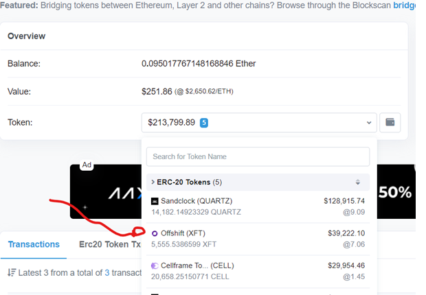 Нажмите на адрес Etherscan (это также может быть BSC, solana,...).