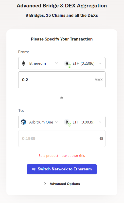 Все, мы перевели ETH в сеть Arbitrum, используя указанный выше мост.