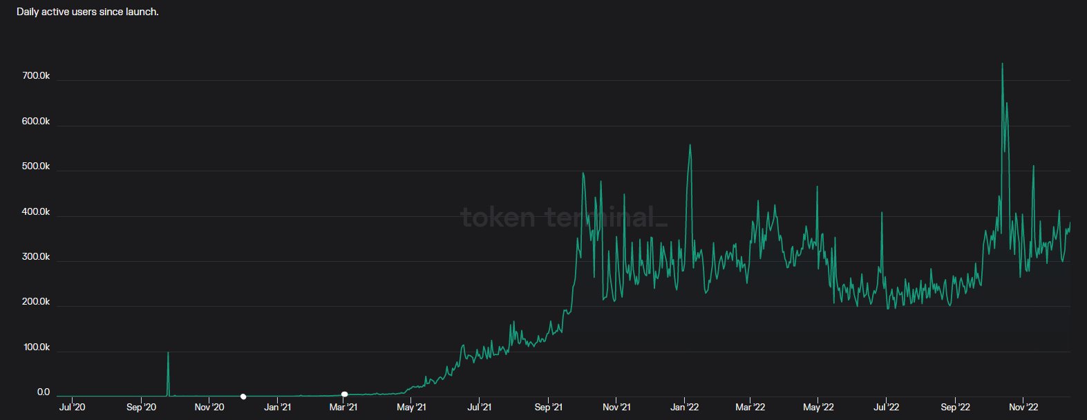 Масштабный (и устойчивый) рост числа ежедневных активных пользователей - хороший способ оценить настроение конкретного блокчейна. А если сравнить его с другими, то легче определить, когда конкретная экосистема работает исключительно хорошо.