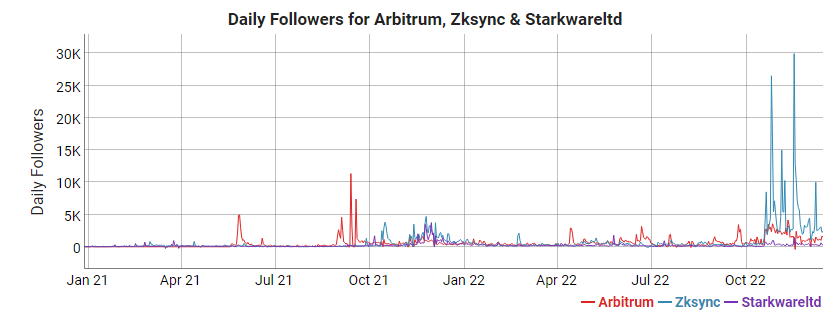 Сравните прирост ежедневных активных пользователей в нескольких блокчейнах, чтобы заметить рост использования.