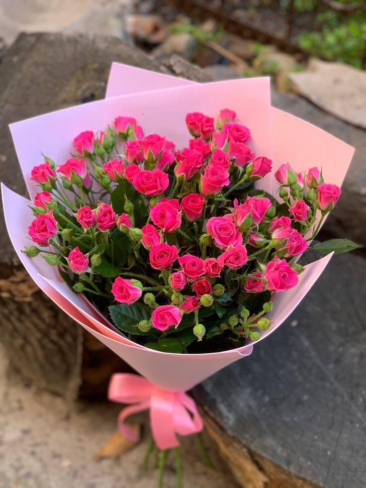 Кустовые розы - великолепны в школьных букетах. Как раз многие из них имеют повторное цветение в начале сентября. Принцип составления букета аналогичен гортензиям.