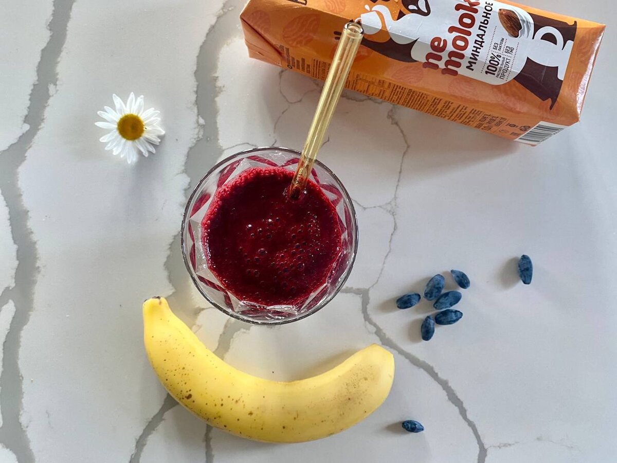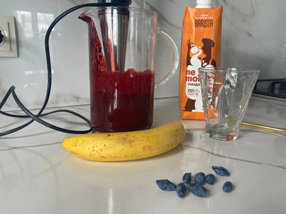 Взбиваем жимолость, банан и молоко