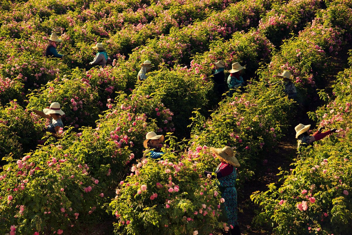Аромат у роз дают микроскопические железы лепестков. Не удивительно, что самыми ароматными являются многолепестковые розы. Поэтому для получения розового масла собирают именно лепестки роз. Фруктовые оттенки лимона, апельсина, древесные мускуса, мирра, сухой древесины, орехов, оттенки ягод, малины, винограда, меда, свежей травы, ландышей, грибов, мха, чая, перца — впечатляющие грани розовых ароматов.