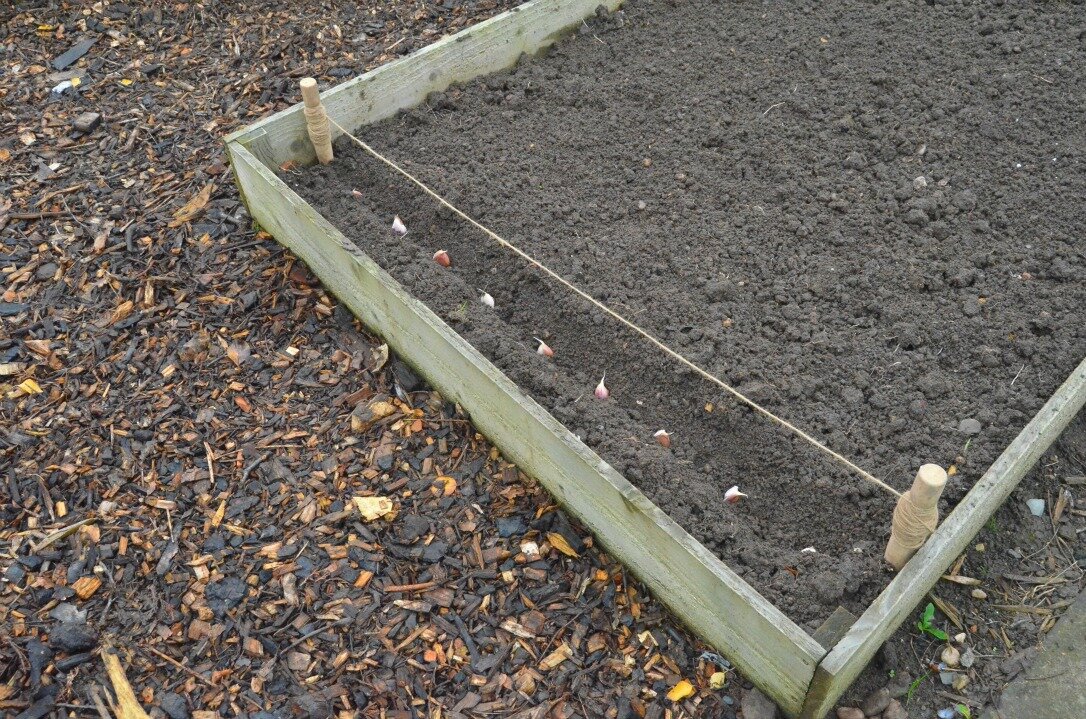 Если Ваша почва пока не насыщена питанием, в ней мало органики, она не имеет рыхлую структуру богатую гумусом, рекомендуем дополнить грядку гранулами АМИНОСИЛ универсальный из расчета 30 гр на 1 кв.м. плотных почв, 60 гр на 1 кв. м для легких песчаных почв. Важно не поливать чеснок при такой технологии посадки.