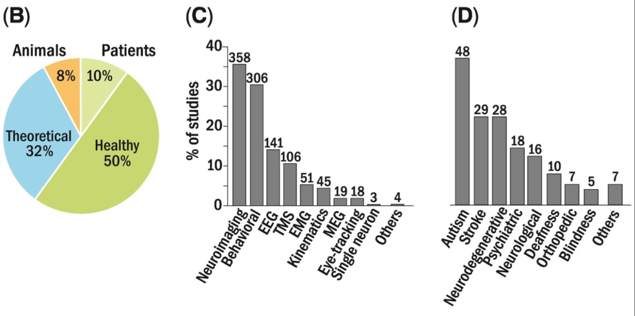 ΠΠ΅ΡΠ°Π°Π½Π°Π»ΠΈΠ·Ρ ΠΈΡΡΠ»Π΅Π΄ΠΎΠ²Π°Π½ΠΈΠΉ Ρ ΠΈΡΠΏΠΎΠ»ΡΠ·ΠΎΠ²Π°Π½ΠΈΠ΅ΠΌ ΡΡΠ½ΠΊΡΠΈΠΎΠ½Π°Π»ΡΠ½ΠΎΠΉ ΠΌΠ°Π³Π½ΠΈΡΠ½ΠΎ-ΡΠ΅Π·ΠΎΠ½Π°Π½ΡΠ½ΠΎΠΉ ΡΠΎΠΌΠΎΠ³ΡΠ°ΡΠΈΠΈ ΠΏΠΎΠΊΠ°Π·Π°Π»ΠΈ, ΡΡΠΎ ΠΏΡΠΈ Π²ΡΠΏΠΎΠ»Π½Π΅Π½ΠΈΠΈ Π·Π°Π΄Π°Ρ, ΡΠ²ΡΠ·Π°Π½Π½ΡΡ Ρ ΠΈΠΌΠΈΡΠ°ΡΠΈΠ΅ΠΉ ΠΈ Π½Π°Π±Π»ΡΠ΄Π΅Π½ΠΈΠ΅ΠΌ Π·Π° Π΄Π΅ΠΉΡΡΠ²ΠΈΡΠΌΠΈ, Ρ ΡΡΠ°ΡΡΠ½ΠΈΠΊΠΎΠ² Ρ ΡΠ°ΡΡΡΡΠΎΠΉΡΡΠ²ΠΎΠΌ Π°ΡΡΠΈΡΡΠΈΡΠ΅ΡΠΊΠΎΠ³ΠΎ ΡΠΏΠ΅ΠΊΡΡΠ° Π΄Π΅ΠΉΡΡΠ²ΠΈΡΠ΅Π»ΡΠ½ΠΎ Π½Π°Π±Π»ΡΠ΄Π°Π»ΠΈΡΡ Π½Π΅ΡΠΈΠΏΠΈΡΠ½ΡΠ΅ Π°ΠΊΡΠΈΠ²Π°ΡΠΈΠΈ Π² ΠΎΠ±Π»Π°ΡΡΡΡ ΠΌΠΎΠ·Π³Π°, ΡΠ²ΡΠ·Π°Π½Π½ΡΡ Ρ Π·Π΅ΡΠΊΠ°Π»ΡΠ½ΡΠΌΠΈ Π½Π΅ΠΉΡΠΎΠ½Π°ΠΌΠΈ. ΠΡΠΈ ΠΎΠ±Π»Π°ΡΡΠΈ Π²ΠΊΠ»ΡΡΠ°ΡΡ ΠΏΡΠ΅ΠΌΠΎΡΠΎΡΠ½ΡΡ ΠΊΠΎΡΡ, Π½ΠΈΠΆΠ½ΡΡ ΡΠ΅ΠΌΠ΅Π½Π½ΡΡ Π΄ΠΎΠ»ΡΠΊΡ ΠΈ ΠΎΡΡΡΠΎΠ²ΠΎΠΊ.