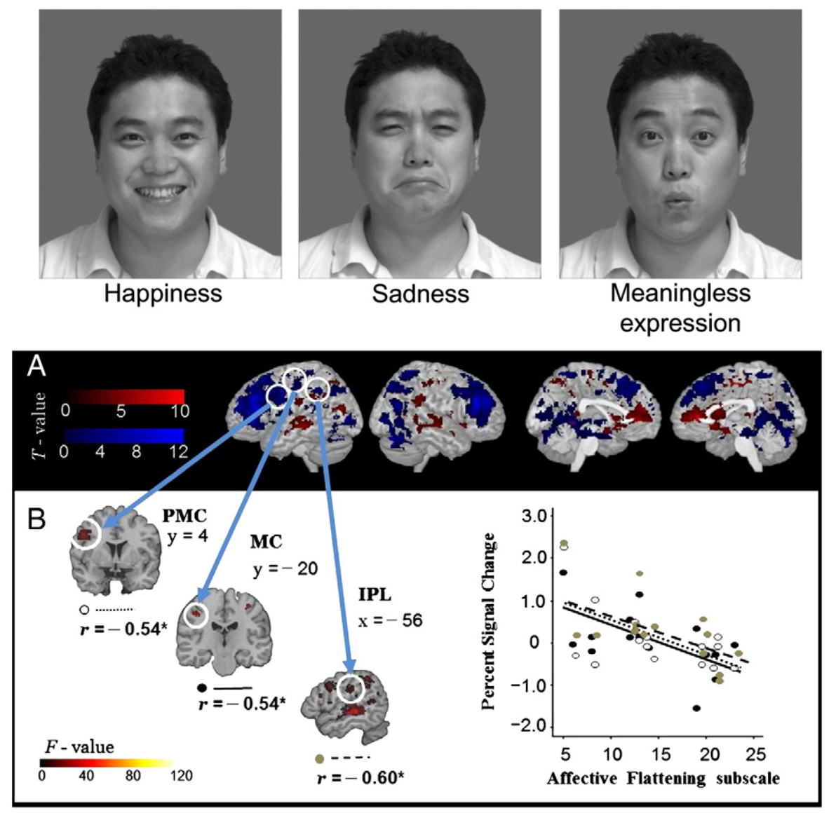 ΠΠ΅ΡΠΎΡΡΠ½ΠΎ, ΡΠΌΠΎΡΠΈΠΎΠ½Π°Π»ΡΠ½Π°Ρ Ρ ΠΎΠ»ΠΎΠ΄Π½ΠΎΡΡΡ ΠΏΡΠΈ ΡΠΈΠ·ΠΎΡΡΠ΅Π½ΠΈΠΈ ΡΠ°ΠΊΠΆΠ΅ ΡΠ²ΡΠ·Π°Π½Π° Ρ ΠΈΠ·ΠΌΠ΅Π½Π΅Π½ΠΈΡΠΌΠΈ Π² ΡΠΈΡΡΠ΅ΠΌΠ΅ Π·Π΅ΡΠΊΠ°Π»ΡΠ½ΡΡ Π½Π΅ΠΉΡΠΎΠ½ΠΎΠ². ΠΠ°ΠΏΡΠΈΠΌΠ΅Ρ, ΠΊΠΎΠ³Π΄Π° Π² ΡΠΊΡΠΏΠ΅ΡΠΈΠΌΠ΅Π½ΡΠ°Ρ ΠΏΠ°ΡΠΈΠ΅Π½ΡΠ°ΠΌ Ρ ΡΠΈΠ·ΠΎΡΡΠ΅Π½ΠΈΠ΅ΠΉ ΠΏΠΎΠΊΠ°Π·ΡΠ²Π°Π»ΠΈ ΠΈΠ·ΠΎΠ±ΡΠ°ΠΆΠ΅Π½ΠΈΡ Π»ΡΠ΄Π΅ΠΉ Ρ ΡΠ°Π΄ΠΎΡΡΠ½ΠΎΠΉ, Π³ΡΡΡΡΠ½ΠΎΠΉ ΠΈΠ»ΠΈ Π½Π΅ΠΉΡΡΠ°Π»ΡΠ½ΠΎΠΉ ΠΌΠΈΠΌΠΈΠΊΠΎΠΉ, ΠΎΠ½ΠΈ Ρ ΡΠΆΠ΅ Π΅Π΅ ΠΎΡΠ·Π΅ΡΠΊΠ°Π»ΠΈΠ²Π°Π»ΠΈ. ΠΠ½ΠΈ Π±ΡΠ»ΠΈ ΠΌΠ΅Π½Π΅Π΅ ΡΠΊΡΠΏΡΠ΅ΡΡΠΈΠ²Π½Ρ Π² Π²ΡΡΠ°ΠΆΠ΅Π½ΠΈΡΡ ΡΡΠ°ΡΡΡΡ ΠΈ ΠΏΠ΅ΡΠ°Π»ΠΈ, Π° Π·Π°ΡΠ°ΡΡΡΡ ΠΈ Π²ΠΎΠ²ΡΠ΅ ΠΎΡΠ²Π΅ΡΠ°Π»ΠΈ Π½Π° ΠΌΠΈΠΌΠΈΠΊΡ Π½Π΅Π²ΠΏΠΎΠΏΠ°Π΄, ΡΠΎ Π΅ΡΡΡ Π½Π° ΡΡΠ°ΡΡΠ΅ β Π³ΡΡΡΡΠ½ΠΎΠΉ ΠΌΠΈΠ½ΠΎΠΉ, Π° Π½Π° ΠΏΠ΅ΡΠ°Π»Ρ β ΡΠ»ΡΠ±ΠΊΠΎΠΉ. ΠΡΠΈ ΡΡΠΎΠΌ Π²ΠΎ Π²ΡΠ΅ΠΌΡ ΠΏΠΎΠΏΡΡΠΊΠΈ Π΄Π°ΡΡ ΡΠΌΠΎΡΠΈΠΎΠ½Π°Π»ΡΠ½ΡΠΉ ΠΎΡΠΊΠ»ΠΈΠΊ Π² ΡΠ°Π·Π»ΠΈΡΠ½ΡΡ ΠΎΠ±Π»Π°ΡΡΡΡ ΠΌΠΎΠ·Π³Π°, Π² ΡΠΎΠΌ ΡΠΈΡΠ»Π΅ ΡΠ΅Ρ , ΠΊΠΎΡΠΎΡΡΠ΅ ΡΡΠ°ΡΡΠ²ΡΡΡ Π² ΡΠ°Π±ΠΎΡΠ΅ ΡΠΈΡΡΠ΅ΠΌΡ Π·Π΅ΡΠΊΠ°Π»ΡΠ½ΡΡ Π½Π΅ΠΉΡΠΎΠ½ΠΎΠ², Π±ΡΠ»ΠΈ Π²ΠΈΠ΄Π½Ρ ΠΏΠΎΠΌΠ΅Ρ ΠΈ. ΠΠ°ΠΏΡΠΈΠΌΠ΅Ρ, ΡΠ½ΠΈΠΆΠ°Π»Π°ΡΡ Π°ΠΊΡΠΈΠ²Π½ΠΎΡΡΡ Π² ΠΏΡΠ΅ΠΌΠΎΡΠΎΡΠ½ΠΎΠΉ ΠΊΠΎΡΠ΅.