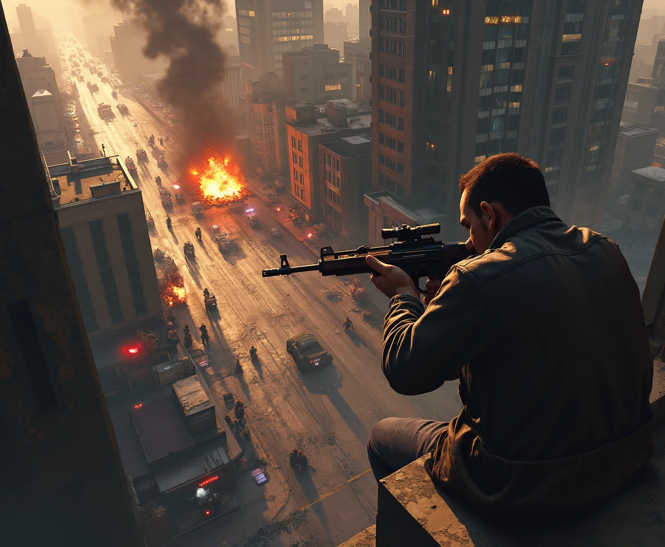 Цель: Пробраться на верхний этаж незаметно, избегая охранников и камер. Игрок должен взломать систему безопасности и устранить врагов тихо. Здесь важен выбор тактики — через крышу, подземный паркинг или вентиляцию.