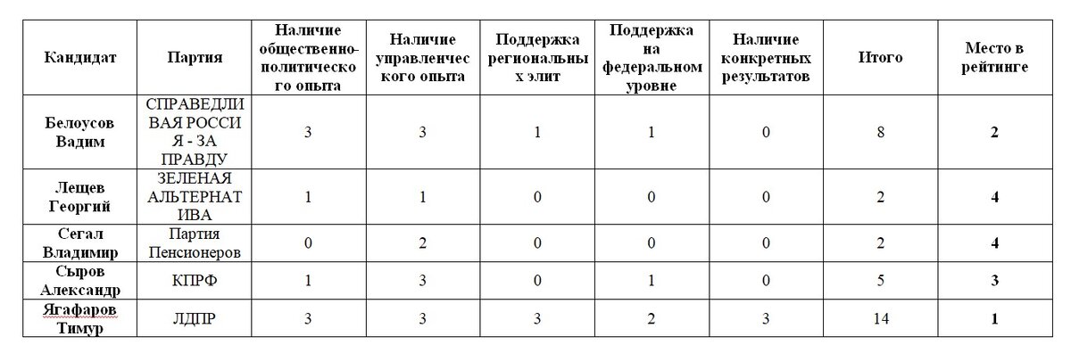 Также не стоит забывать, что у Ягафарова чистая и незапятнанная репутация. В отличие от других оппонентов Сырова и Белоусова у него нет проблем с законом. Но это уже вне рейтинговая оценка.