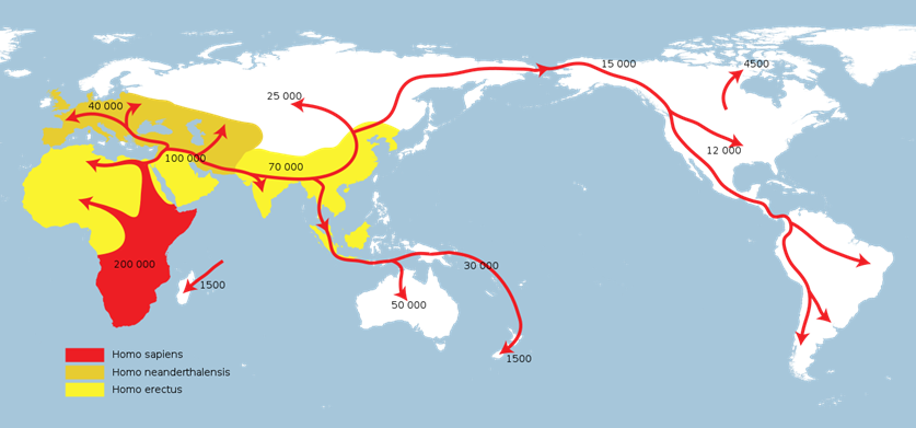 На нашем канале немало статей посвящено проблеме антропогенеза, и генетическим исследованиям останков древних Homo sapiens. Напомним, что ещё до начала таких исследований (до начала XXI века) гипотеза происхождения Homo sapiens из Африки преобладала среди антропологов, но не имела веских научных (генетических) доказательств, и только с развитием палеогенетики в XXI веке появились генетические доказательства того, что все современные люди произошли от одной «генетической Евы» в Южной Африке около 200 тысяч лет назад. Подробнее мы писали об этом в статье «Генетики подтвердили: все ныне живущие люди произошли от одной Праматери». Важно подчеркнуть, что, согласно этим исследованиям, первые группы Homo sapiens (кроманьонцев) вышли из Африки...