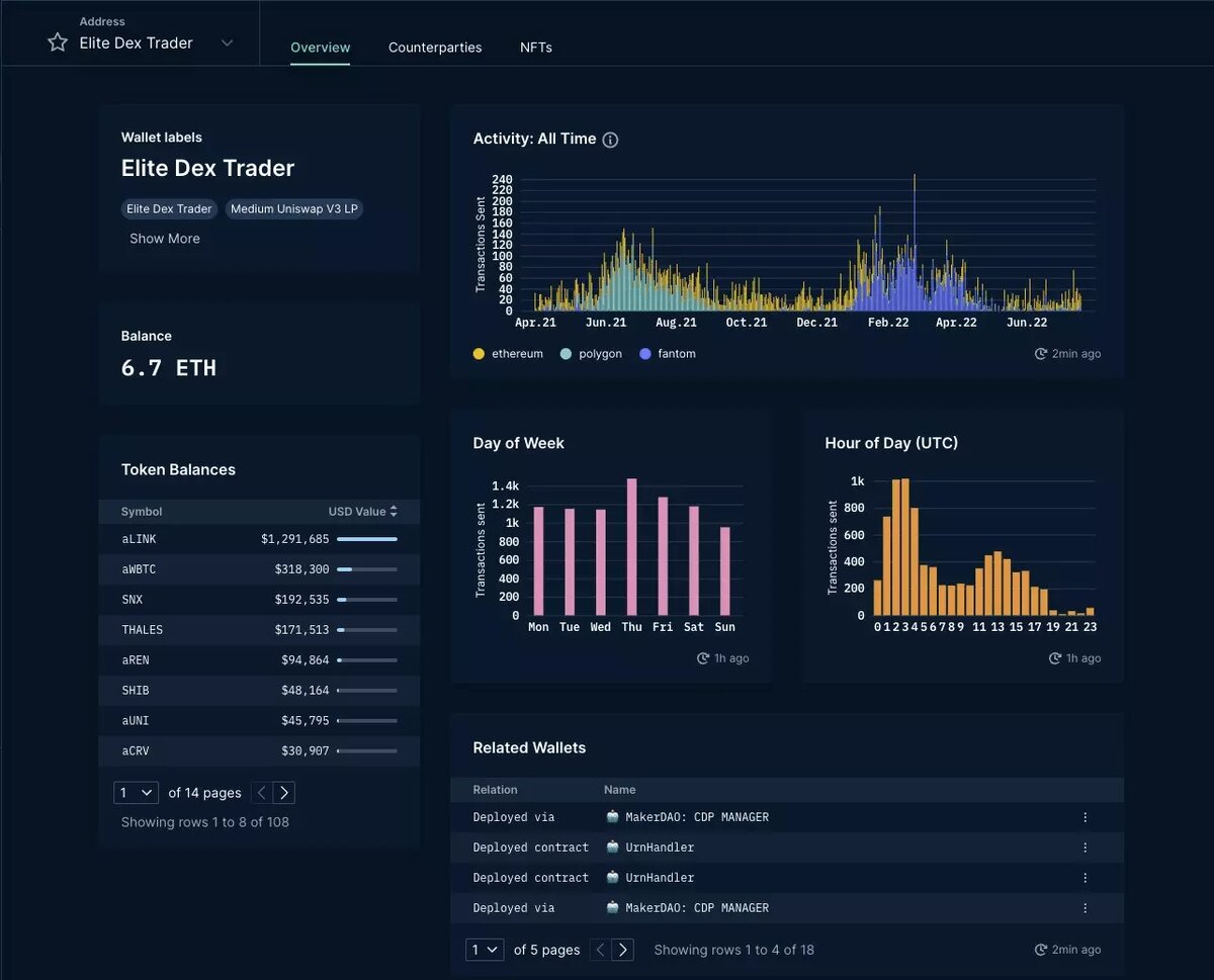 У Nansen есть функция, с помощью которой вы можете идентифицировать другие кошельки, которые тесно связаны с теми, за которыми мы наблюдаем. Это очень полезно, когда дело доходит до наблюдения за китами и отслеживания того, что делают Smart Money: