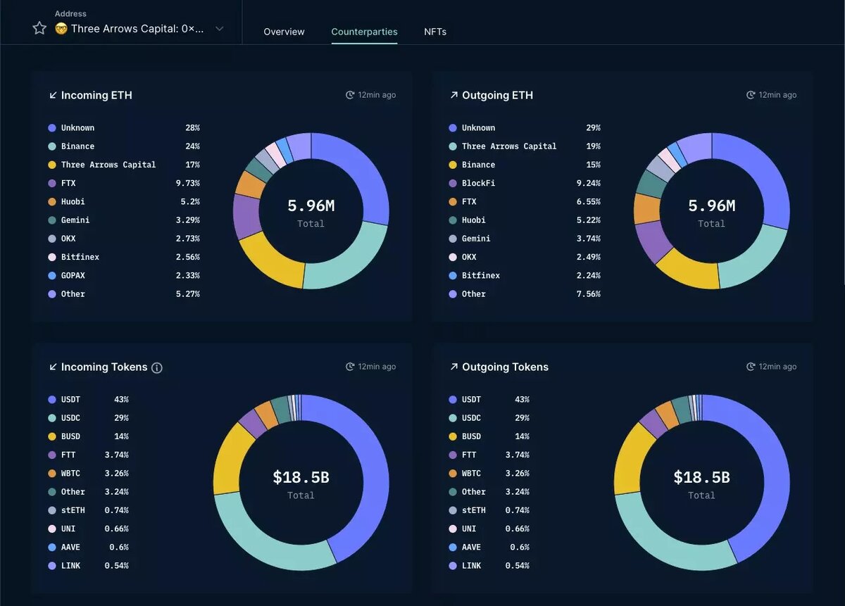 У 3AC есть десятки подобных кошельков с внушительным количеством ETH. Вполне вероятно, что все эти позиции будут ликвидированы, чтобы расплатиться с кредиторами. Проверьте количество средств, которые были перемещены только из одного кошелька: