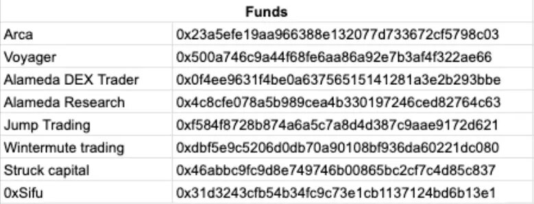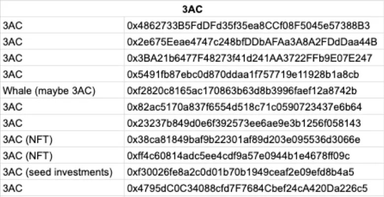 Ниже вы можете увидеть список адресов, которые я создал для наблюдения за 3AC и их движением в сети. Это было сделано для того, что бы наш фонд мог наблюдать за тем, что происходит за кулисами. Здесь стоит отметить, что это далеко не все их активы, есть и другие. Но это самые крупные: