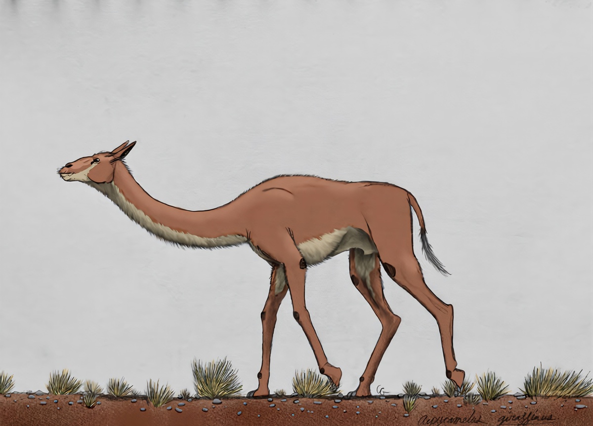 Aepycamelus — вымерший род верблюдовых, ранее называвшийся Alticamelus, который жил в миоцене 20,6–4,9 млн лет назад и просуществовал около 15,7 млн лет. Aepycamelus ходил только на пальцах ног, в отличие от более ранних видов верблюдовых. Это было высокоспециализированное животное, обитавшее в прериях Северной Америки (Колорадо и т. д.). Его голова была относительно небольшой, шея — длинной, а ноги — длинными и похожими на ходули. Верхняя часть головы находилась примерно в 3 метрах над землей. Это строение тела давало информацию о его образе жизни и привычках. Aepycamelus населял сухие луга с группами деревьев, передвигался поодиночке или небольшими группами, как современные жирафы, и объедал деревья. У него не было конкурентов, и он просуществовал всю миоценовую эпоху. Возможно, он вымер до начала плиоцена из-за климатических изменений.