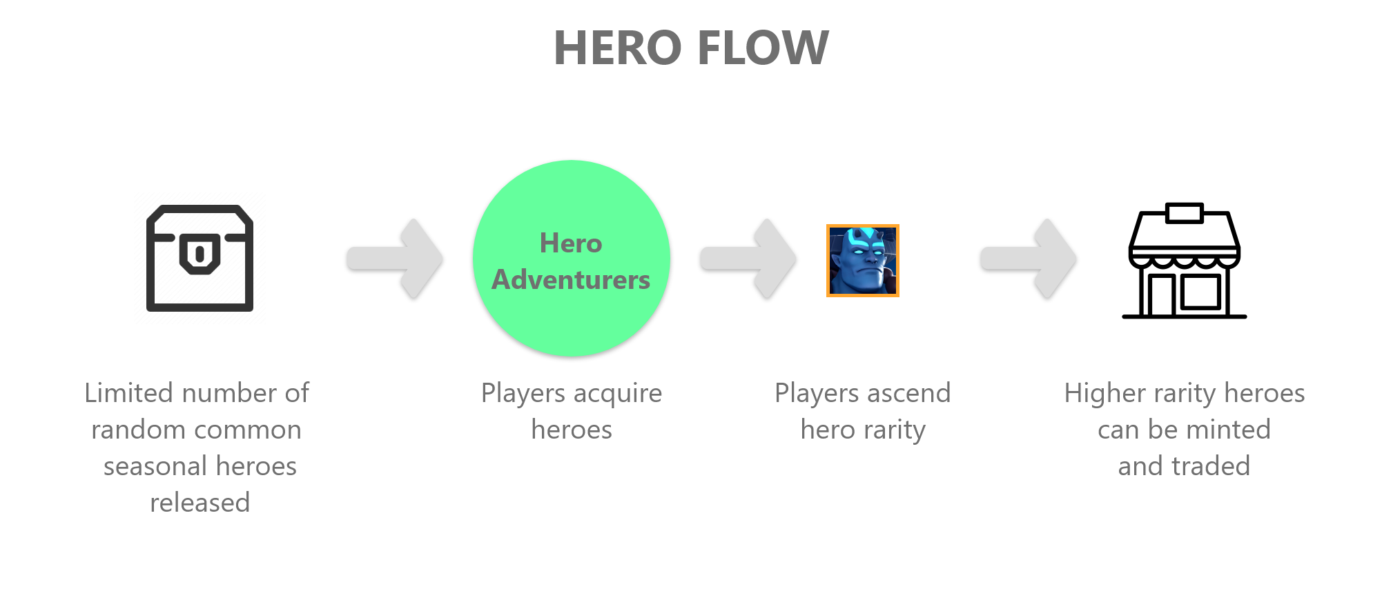 Герои будут поглощать 1 случайную черту одного из героев, которых они поглощают. Важно понимать, как работает восхождение героя, поскольку оно имеет большое значение для предложения героев и рынка.