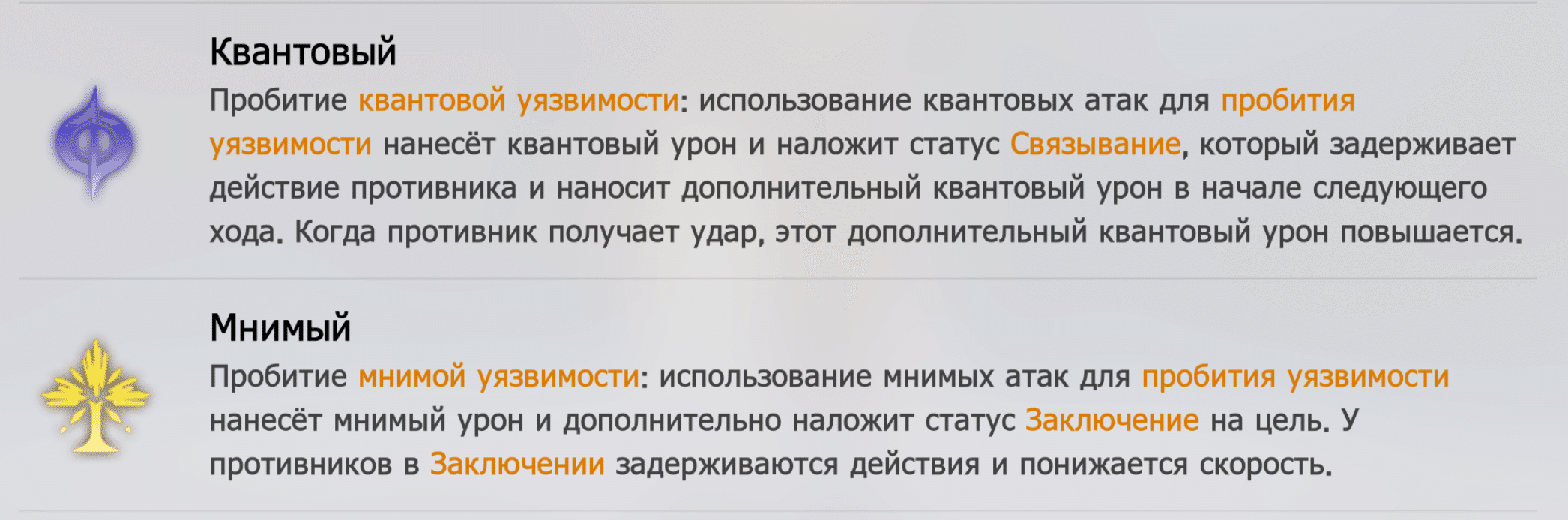 Первое и самое банальное это общие типы боя: Мнимый и Квантовый. Идентичные по названию и схожие по дизайну типы боя в H:SR имеют те же истоки, что и типы боя в HI3. Но обо всём по порядку!