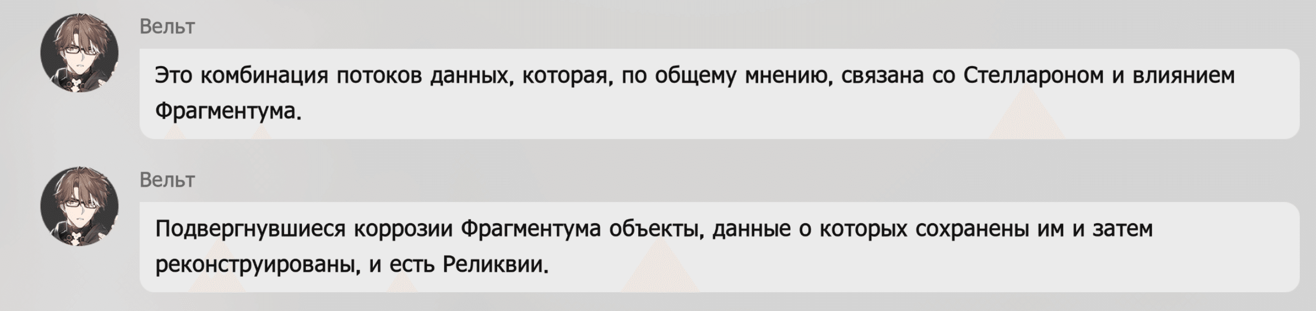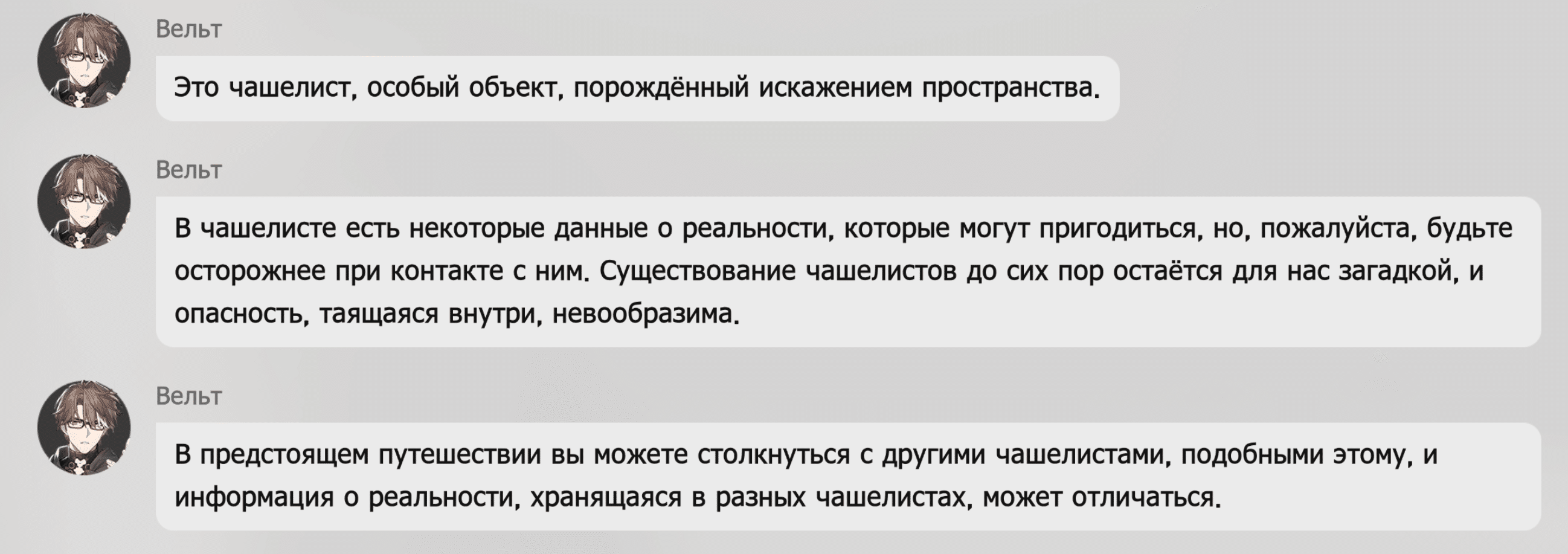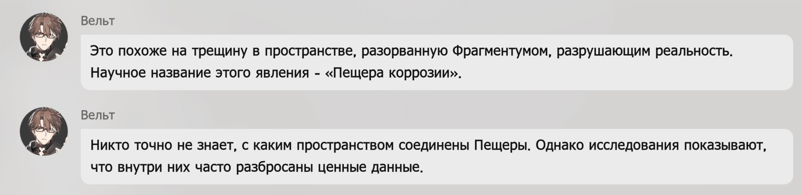 Хоть в H:SR и нет прямого участия персонажей в пространстве Моря Квантов или Древа Мнимости на данный момент игры [в отличие от основного сюжета HI3, где персонажи взаимодействовали с Морем Квантов и Мнимым Древом], у нас уже есть достаточно много упоминаний этих систем в описаниях материалов и в терминах базы данных, а также других интересных деталей, которые постепенно складываются в общую картину.