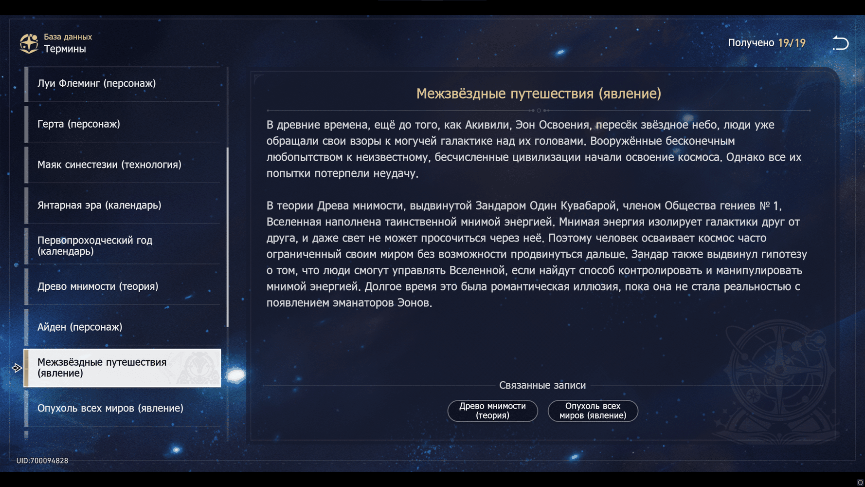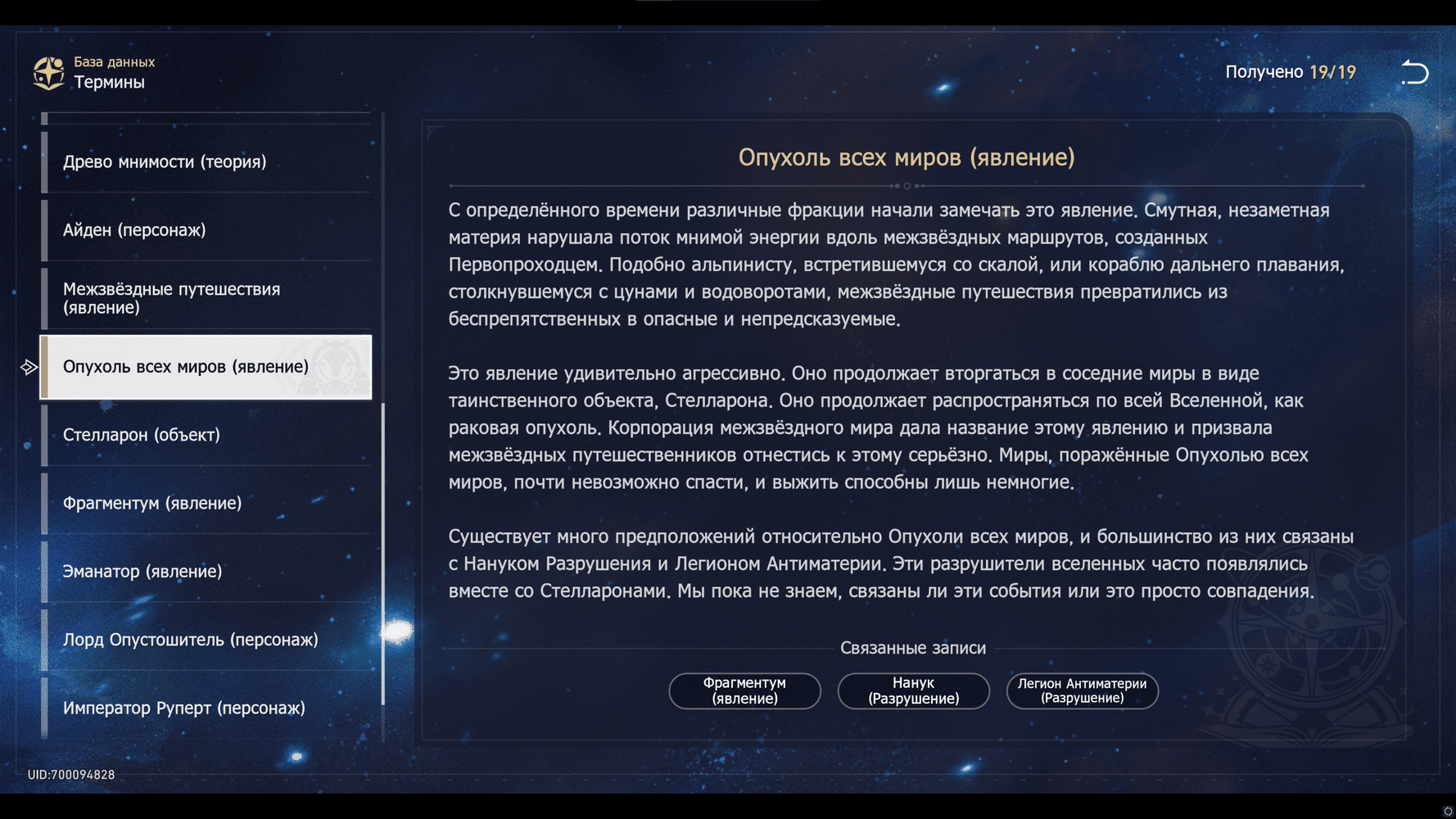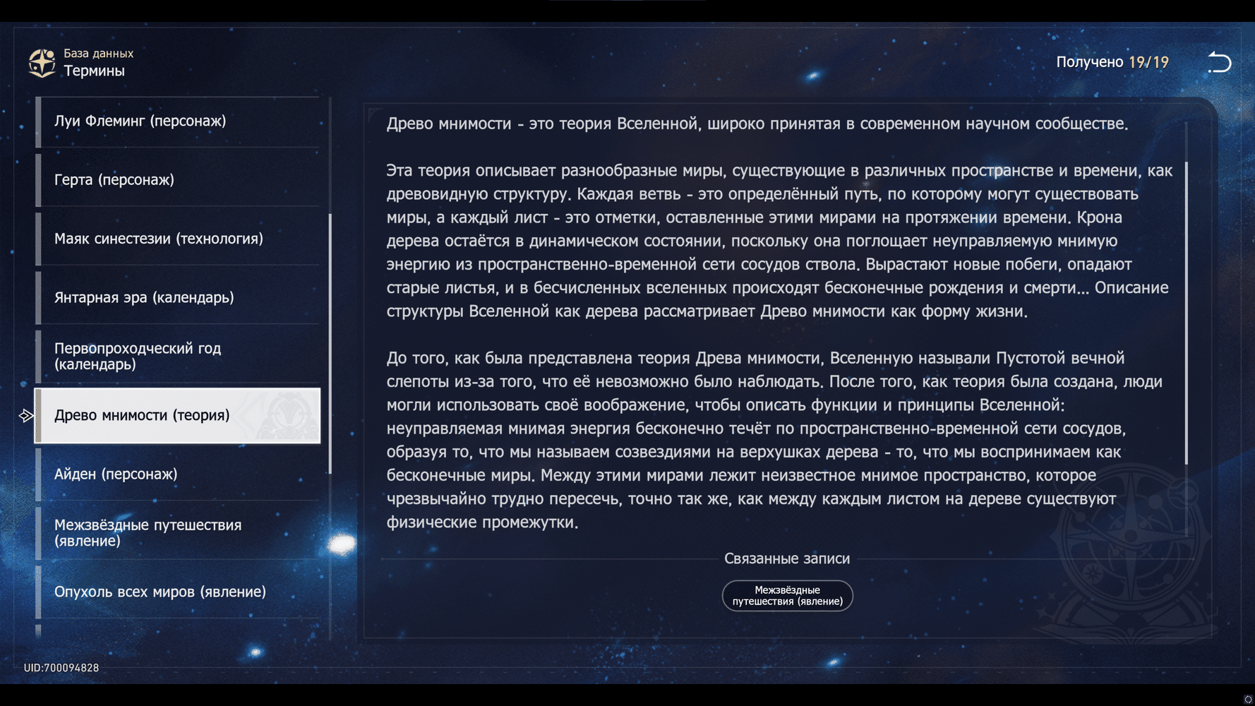 Хоть в H:SR и нет прямого участия персонажей в пространстве Моря Квантов или Древа Мнимости на данный момент игры [в отличие от основного сюжета HI3, где персонажи взаимодействовали с Морем Квантов и Мнимым Древом], у нас уже есть достаточно много упоминаний этих систем в описаниях материалов и в терминах базы данных, а также других интересных деталей, которые постепенно складываются в общую картину.