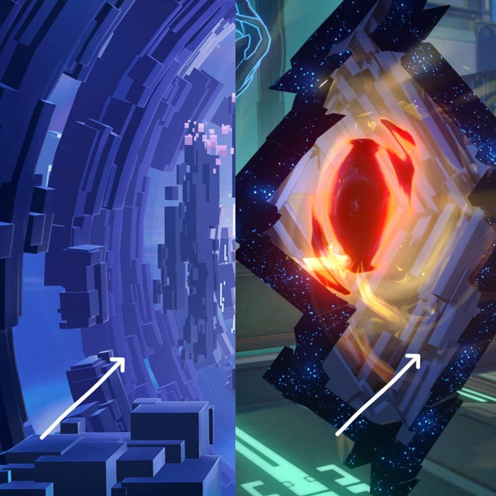 Дизайн этого телепорта лично мне напомнил объект из Моря Квантов во время битвы с Тлалоком: яркое голубое свечение с кольцевидными золотистыми образованиями вокруг (возможно, это ветви Древа Мнимости).