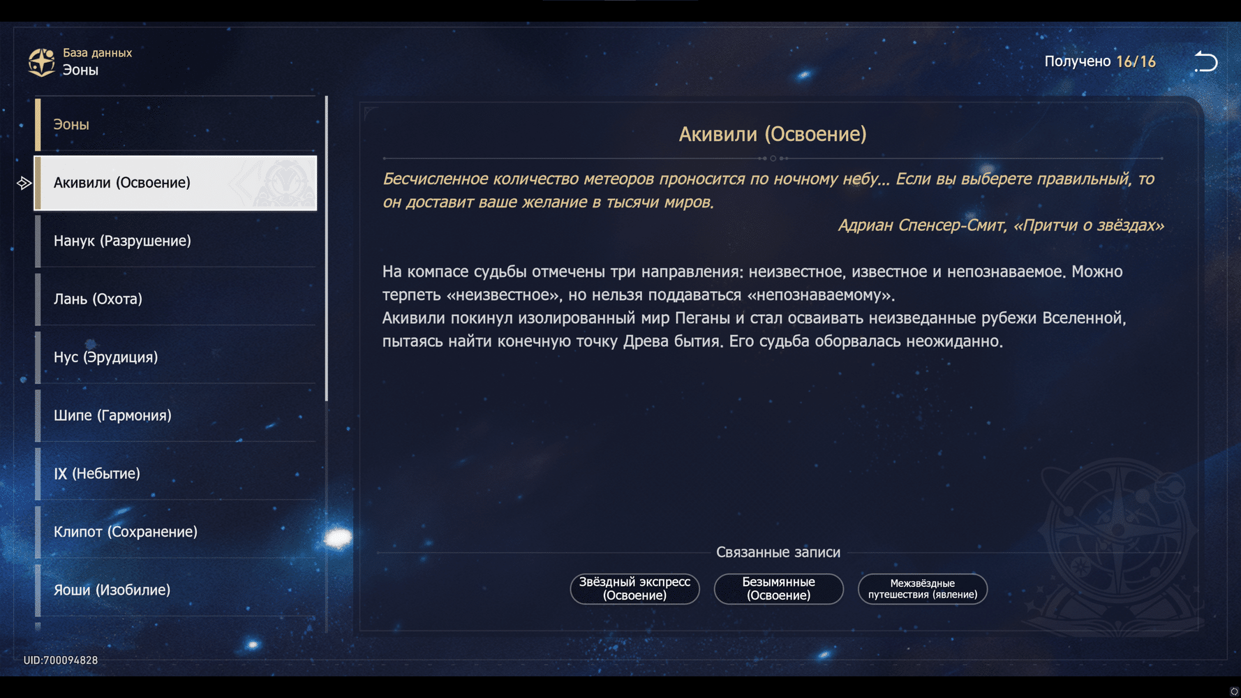 В описании Эона Освоения Акивили сказано, что он пытался найти конечную точку Древа бытия (предпологается, что это альтернативное название Древа Мнимости). В процессе освоения Эон прокладывал Звездные Рельсы, которые соединяют Миры и позволяют Безымянным на Экспрессе совершать межзвёздные путешествия.