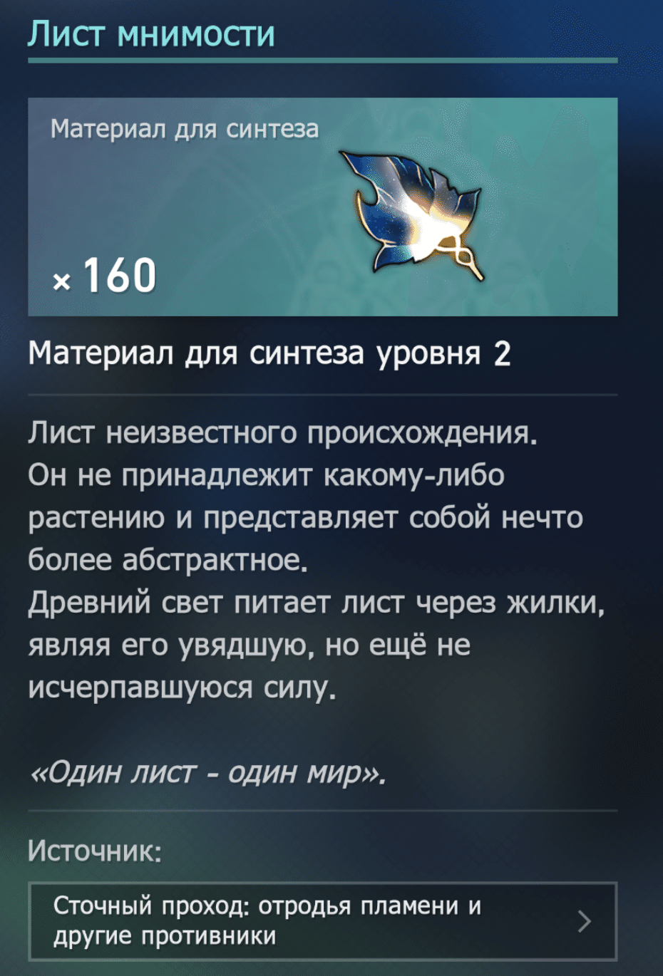 У Древа тоже есть похожий материал в H:SR — Лист мнимости: Лист неизвестного происхождения. Он не принадлежит какому-либо растению и представляет собой нечто более абстрактное. Древний свет питает лист через жилки, являя его увядшую, но ещё не исчерпавшуюся силу.