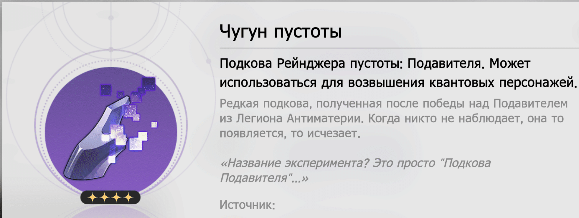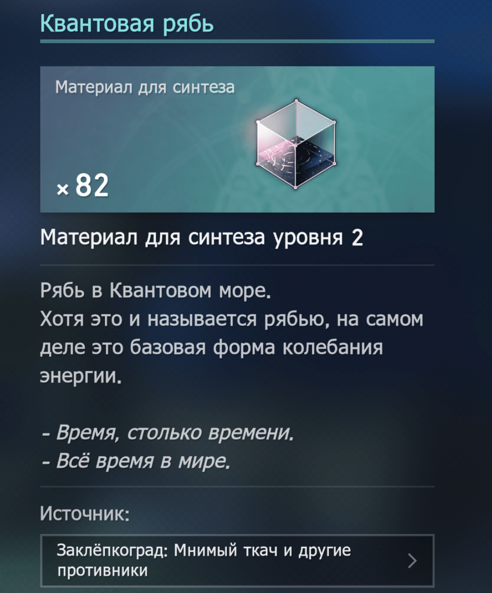 Единственное, что заставляет меня сомневаться в том, что этот материал действительно имеет отношение к тому же Морю Квантов, о котором говорится в HI3, — кит. версия написания: [真空之海], что можно перевести как Море Вакуума, поскольку «квант» или «квантовый» будет выглядеть как [量子] (например, Квантовая Рябь [量子漣漪] или Квантовое Море [量子之海] в HI3).