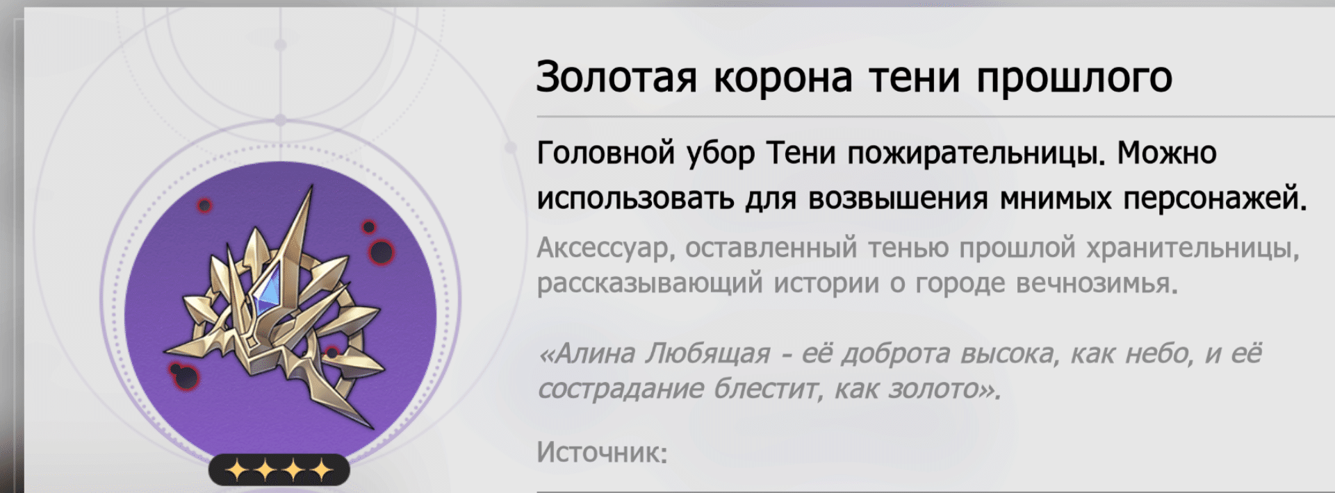 Приятной и малозаметной деталью являются маленькие чёрные круги с контуром красного цвета, нарисованные вокруг Золотой короны тени прошлого, словно тут и там возникающие маленькие чёрные дыры. В случае Чугуна пустоты есть маленькие фиолетовые квадратики с космическим паттерном. Ничего особенного в них нет, просто очень милые детали, которые могут быть связаны с мнимым и квантовым как типом, а могут быть связаны с Мнимым Древом и Квантовым Морем!