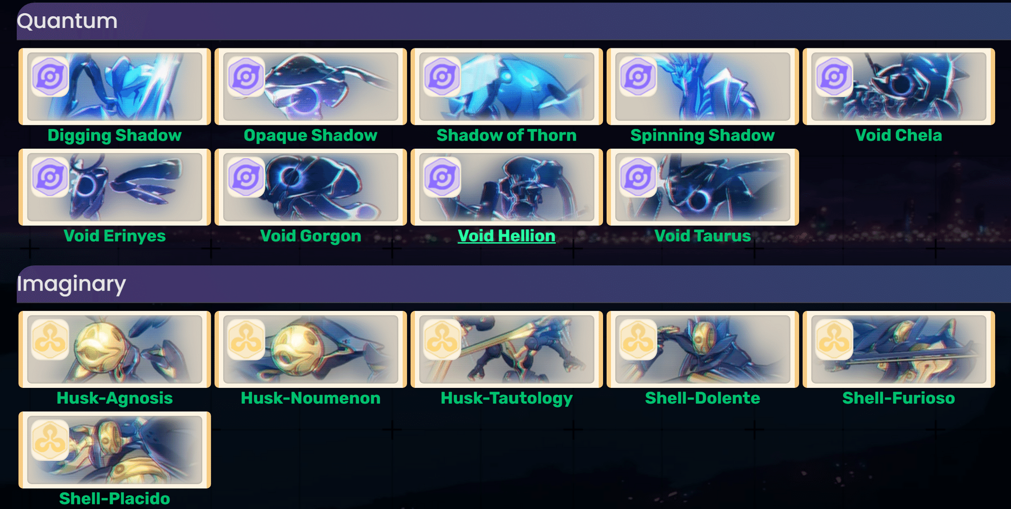 Мне в глаза бросился не только дизайн, но и само название этих врагов. В HI3 есть группа врагов, которых называют Quantum Shadows (Квантовые Тени). Телосложением большинство Квантовых теней напоминают различных Зверей Хонкая. В отличие от них у Квантовых Теней полупрозрачное тело, сквозь которое можно увидеть звездную пустоту.