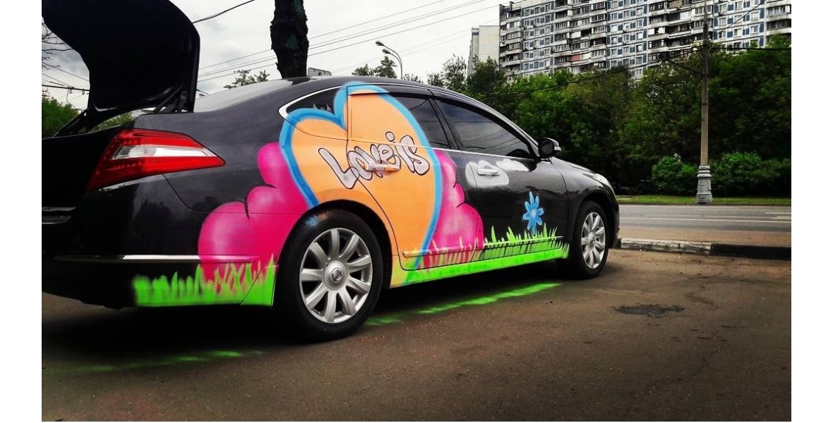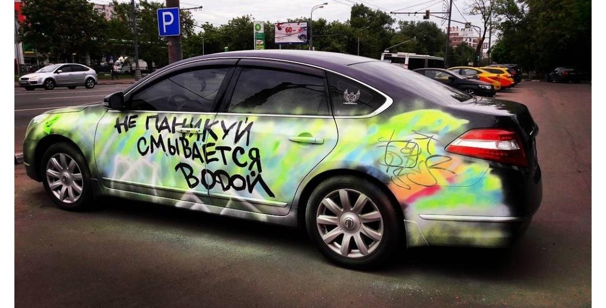 Автограффити — это временные рисунки на авто, которые наносятся специальной меловой краской. Краска смывается водой, поэтому отлично подходит для временных надписей и изображений. Такой рисунок будет обладать ВАУ-эффектом и притягивать внимание окружающих. А это значит отлично зайдет для рекламы магазинов, автосалонов, такси и т.д.