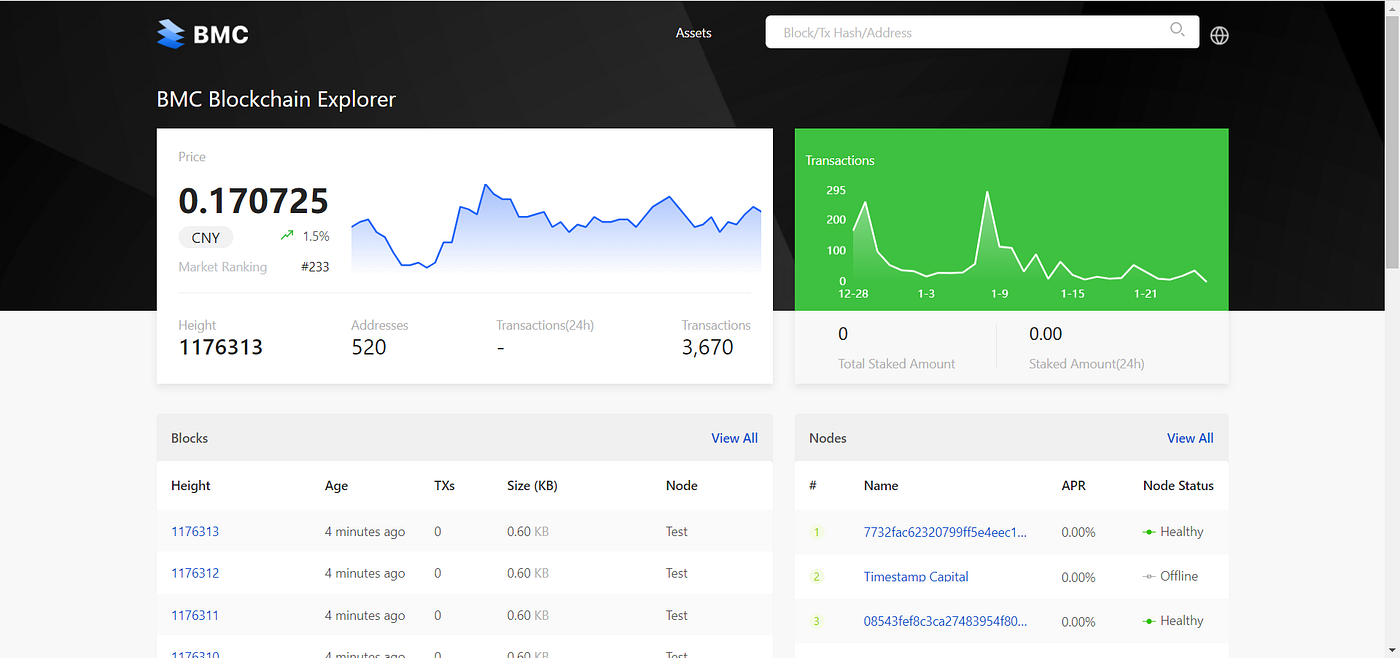 BMC blockchain explorer уже работает в тестовой сети BMC, поддерживает просмотр блоков, транзакций, адресов и активов в режиме реального времени.