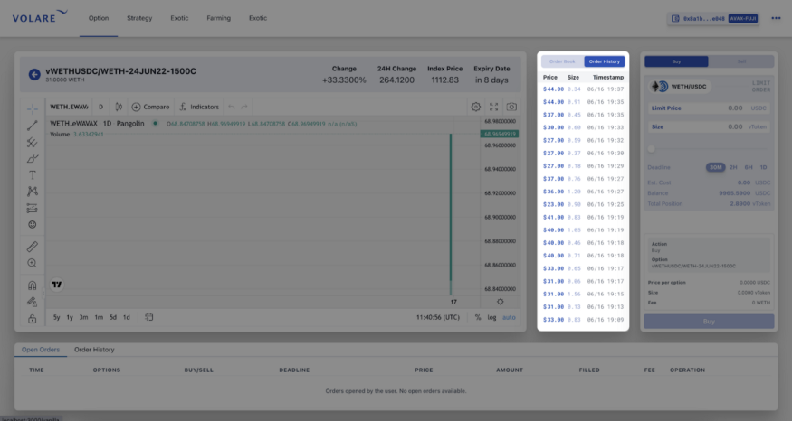 Volare имеет встроенные инструменты Trading View в пользовательском интерфейсе биржи, что позволяет пользователям создавать графики и торговать одновременно.