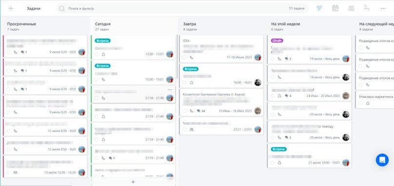 Далее мы оцифровали процесс постановки задач. Теперь к каждой сделки прикрепляются ответственные сотрудники, по ответственным раскидываются задачи, и всегда в одном окне виден ход работы по всем задачам: что просрочено, что сделать сегодня, что завтра, что в будущем.