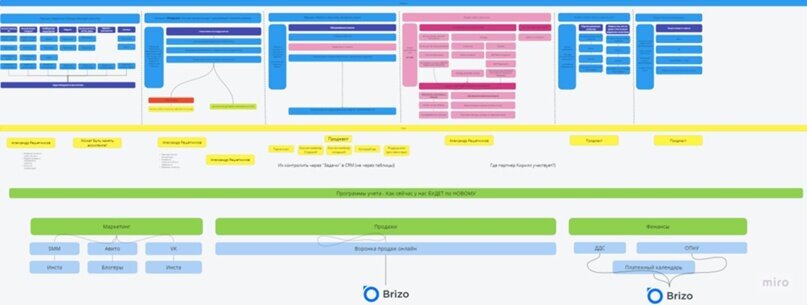 Выяснение цепочек взаимодействий и нюансов работы с клиентами в компании. Составили карту процессов и выдвинули гипотезы, какие сервисы будем использовать и какие нюансы будут внутри.