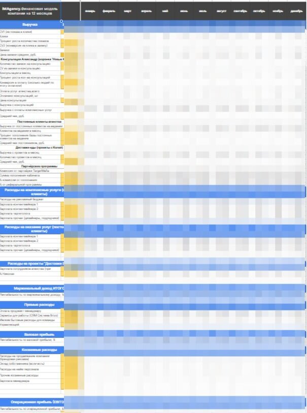 В финансовой модели прописываются все этапы работы вашего бизнеса с точки зрения финансов: от выручки до чистой прибыли. Если конкретнее, то вот: