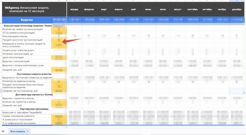 А дальше гвоздь программы и главный смысл финансовой модели: когда вы меняете один из показателей, то видите, как это сказывается на всех остальных.