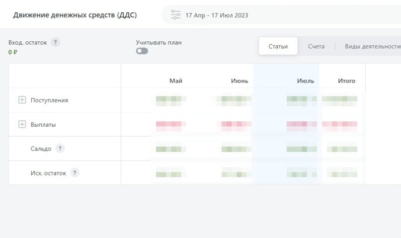 Теперь для принятия верных управленческих решений всегда собираются автоматически основные финансовые отчеты - ДДС (Движение Денежных Средств) и ОПиУ (Отчёт о прибылях и убытках), в которых в срезе каждого месяца можно увидеть: