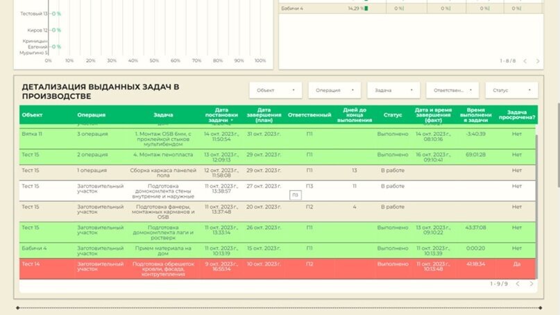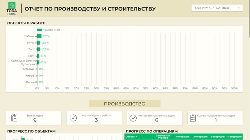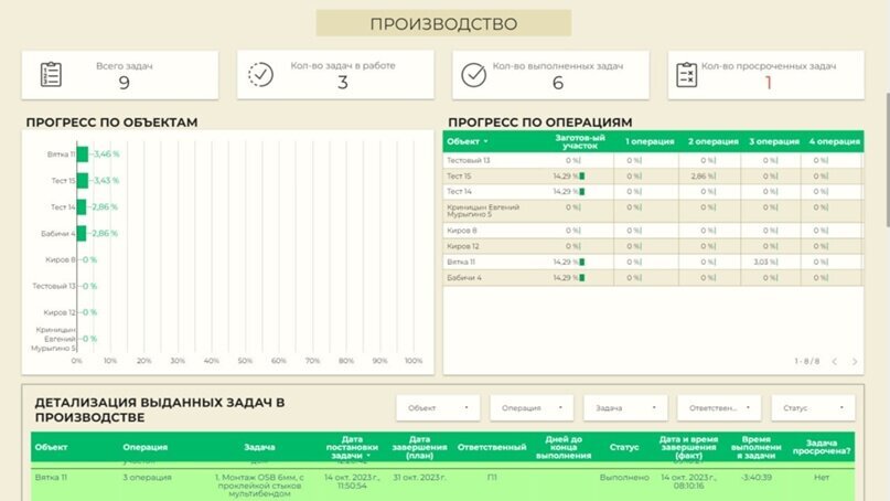 По итогу все эти данные от каждого сотрудника попадают в нашу систему, собственник и руководитель производства видят аналитику по каждому объекту.