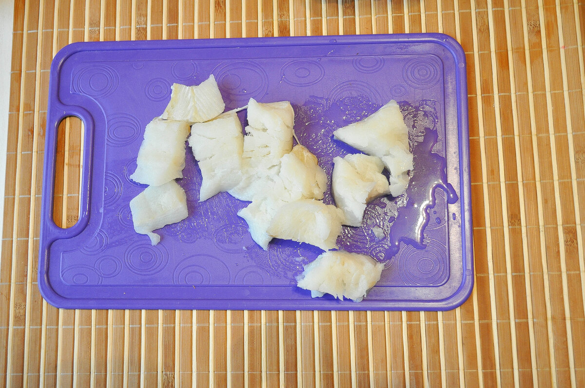 1. Подготовьте необходимые ингредиенты. Если рыба была в морозилке, то вытащите её оттуда и дождитесь полного размораживания. Нарежьте филе камбалы на произвольные куски.