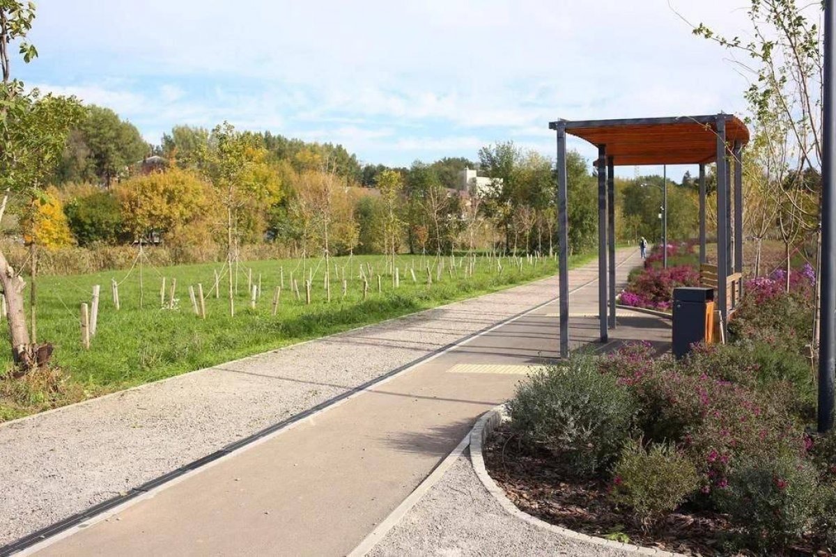 Сообщается, что новое общественное пространство полностью благоустроено. За три года там успели высадить более 1500 кустарников и 800 деревьев, а также создать места отдыха, пешеходные и велодорожки, рощи и навесной мостик над рекой.