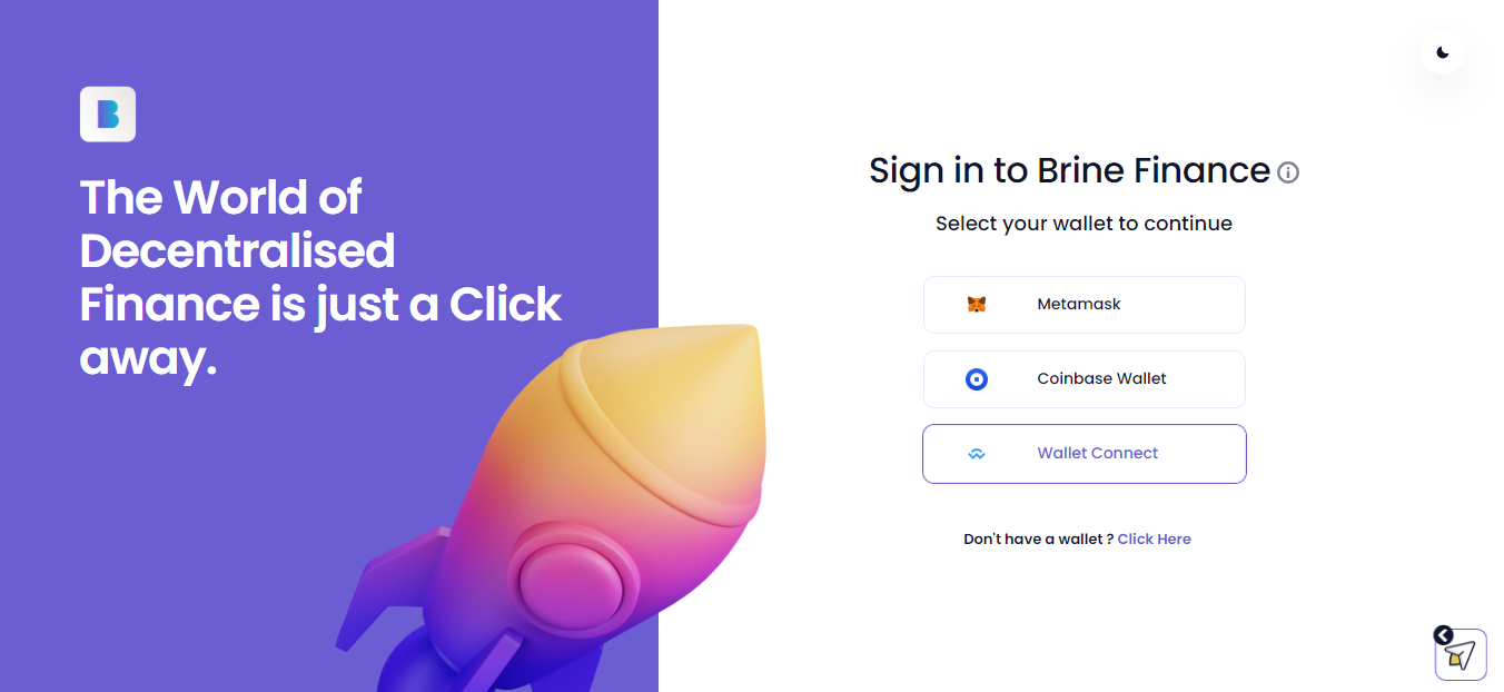 Далее идем на сайт https://testnet.brine.finance/signin и подключаем свой кошелек Metamask