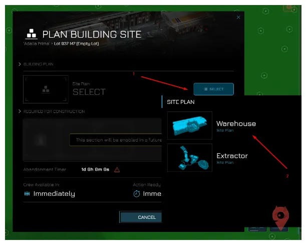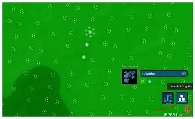 Добыча Core Sample займет 1 час. Теперь устанавливаем там же строения “Plan Building site.